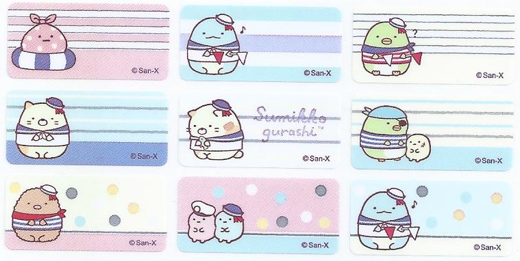 編 號 : 44 卡通人物 : 珍珠白(大) 貼紙尺寸 : 4.6cm x 1.5cm 每包價錢 : HK$35.0 / 72 小張 |  編 號 : 45 卡通人物 : 角落生物(海軍版) 貼紙尺寸 : 3.0cm x 1.3cm 每包價錢 : HK$35.0 / 72 小張 |