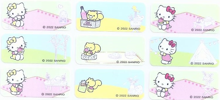編 號 : 19 卡通人物 : Hello Kitty 野餐版 貼紙尺寸 : 3.0cm x 1.3cm 每包價錢 : HK$35.0 / 72 小張 |  編 號 : 20 卡通人物 : 叮噹 (中) 貼紙尺寸 : 3.0cm x 1.3cm 每包價錢 : HK$35.0 / 72 小張 |  編 號 : 21 卡通人物 : 銀光(中) 貼紙尺寸 : 3.0cm x 1.5cm 每包價錢 : HK$35.0 / 100 小張 |