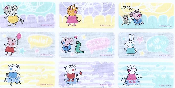 編 號 : 4 卡通人物 : Peppa Pig (鉛筆) 貼紙尺寸 : 3.0cm x 1.4cm 每包價錢 : HK$35.0 / 72 小張 |  編 號 : 5 卡通人物 : 角落生物(海洋版) 貼紙尺寸 : 3.0cm x 1.3cm 每包價錢 : HK$35.0 / 72 小張 |  編 號 : 6 卡通人物 : 米奇/米妮/pooh 貼紙尺寸 : 3.0cm x 1.3cm 每包價錢 : HK$35.0 / 72 小張 |