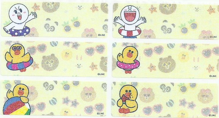 編 號 : 1 卡通人物 : TSUM SUM(中) 貼紙尺寸 : 3.0cm x 1.3cm 每包價錢 : HK$35.0 / 72 小張 |  編 號 : 2 閃粉 卡通人物 : Lines Friend 貼紙尺寸 : 4.6cm x 1.5cm 每包價錢 : HK$60.0 /72 小張 |  編 號 : 3 卡通人物 : 鬆弛熊(大) 貼紙尺寸 : 4.6cm x 1.5cm 每包價錢 : HK$35.0 / 60 小張 |