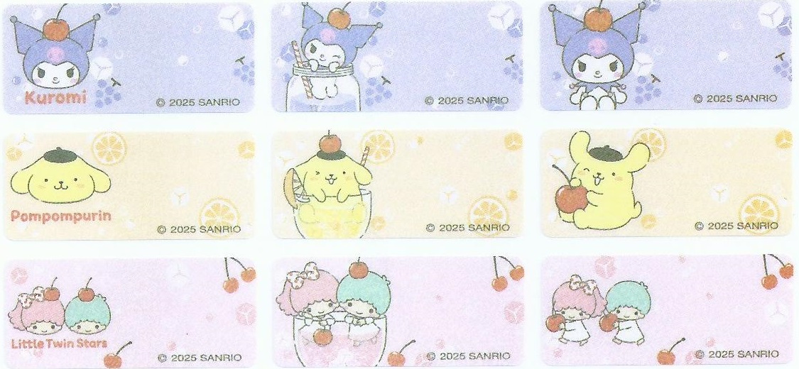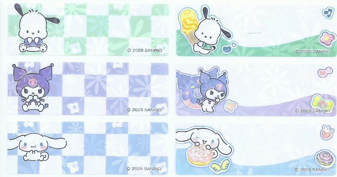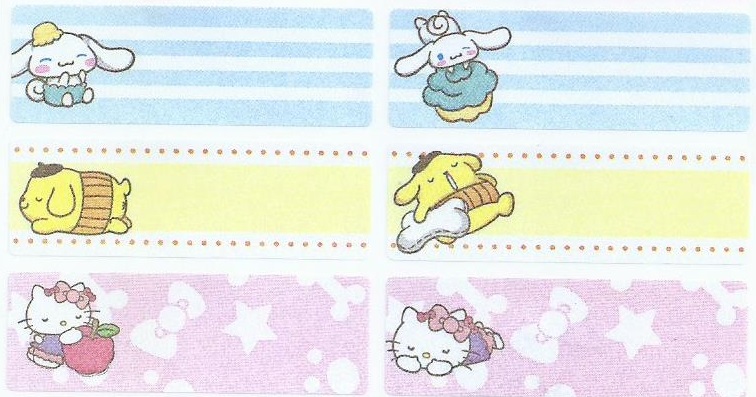編 號 : 55 閃粉 卡通人物 : 大耳狗mix (溫泉) 貼紙尺寸 : 3cm x 1.3cm 每包價錢 : HK$35.0 /72小張 |  編 號 : 56 閃粉 卡通人物 : 布丁狗 mix (朋友) 貼紙尺寸 : 3cm x 1.3cm 每包價錢 : HK$35.0 /72小張 |  編 號 : 57 閃粉 卡通人物 : Kuromi mix (童趣)(大) 貼紙尺寸 : 4.6cm x 1.5cm 每包價錢 : HK$35.0 /60小張 |